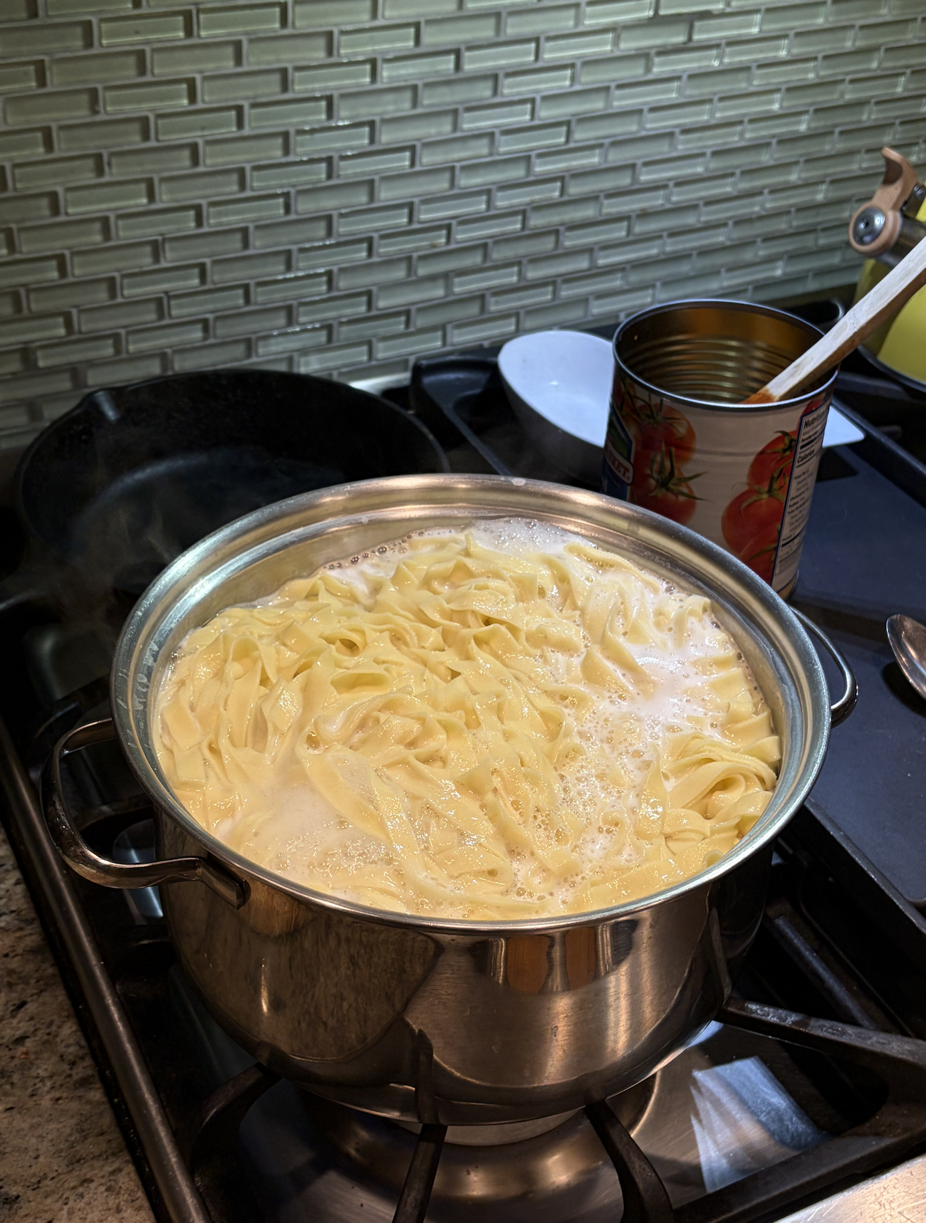 Like I said earlier, I’ve made this by hand before; back in college, I would roll the dough with a wine bottle and cut the noodles with a knife to make it for my partner. You can get creative with the shapes if you want to. The machine saves time, sure, but some of the best meals are the ones where you take longer than you need to. What takes longer tends to stick with you. There’s no single right way to shape the pasta itself as long as it’s thin enough to cook.