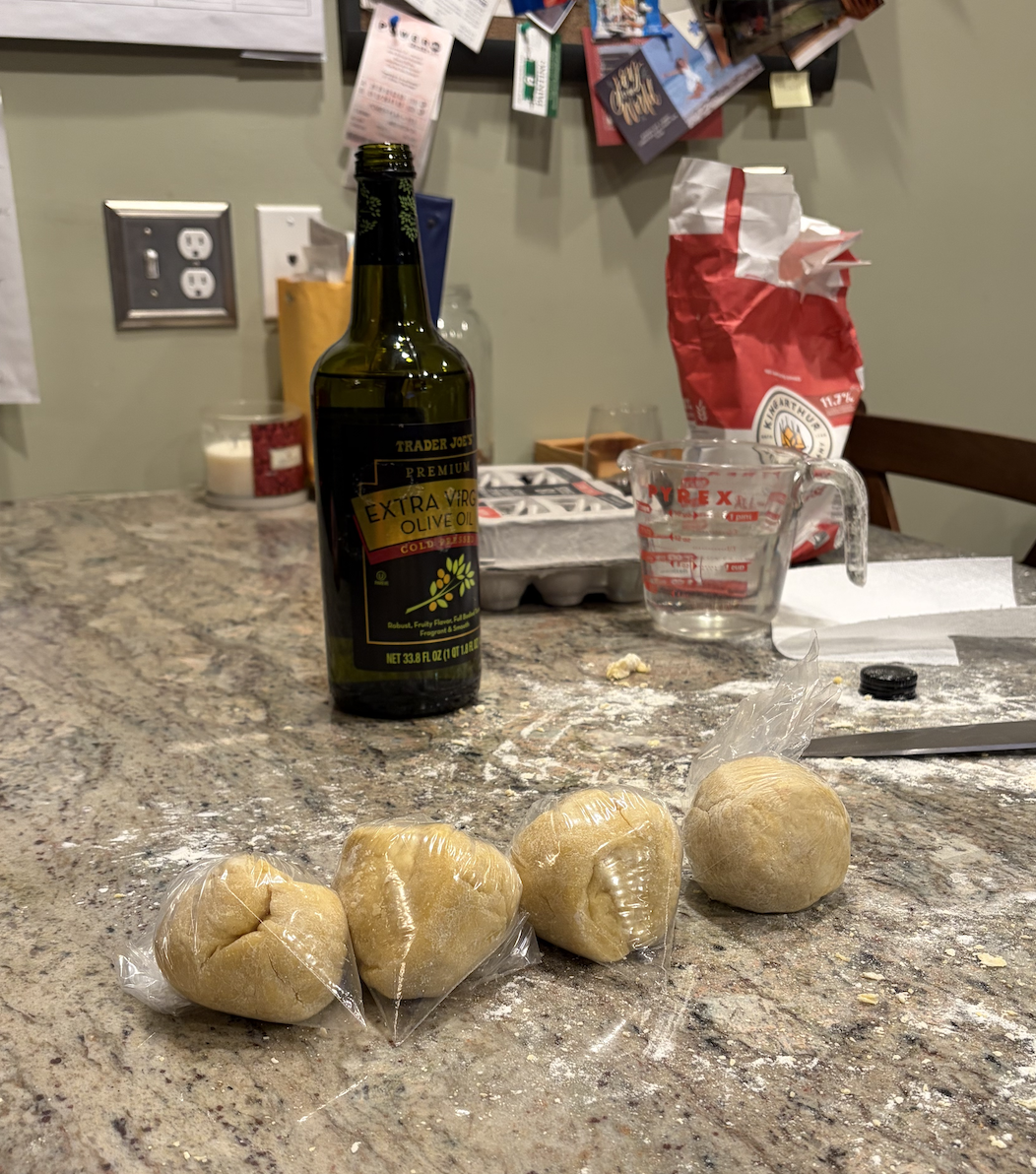 While I let it sit, I think about how much trial and error went into figuring all this out. Someone way back had to discover which grains you could actually grind up, how long to let dough sit around, what kind of heat turns it into something you can eat. And now? It’s ridiculously easy. The ingredients just show up like they were always meant to be there. Grown somewhere else, processed who knows where, grabbed off a shelf without thinking twice, now sitting in our pantry. There’s this massive supply chain behind it all that I never see. It’s pretty remarkable that I can make this whenever I want, and the abundance only feels normal because I’ve never had to live any other way.